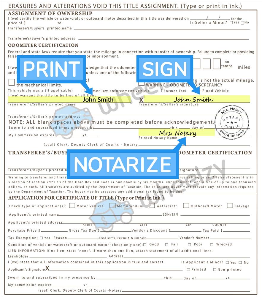 How To Sign Your Car Title In Ohio Including Dmv Title Sample Picture